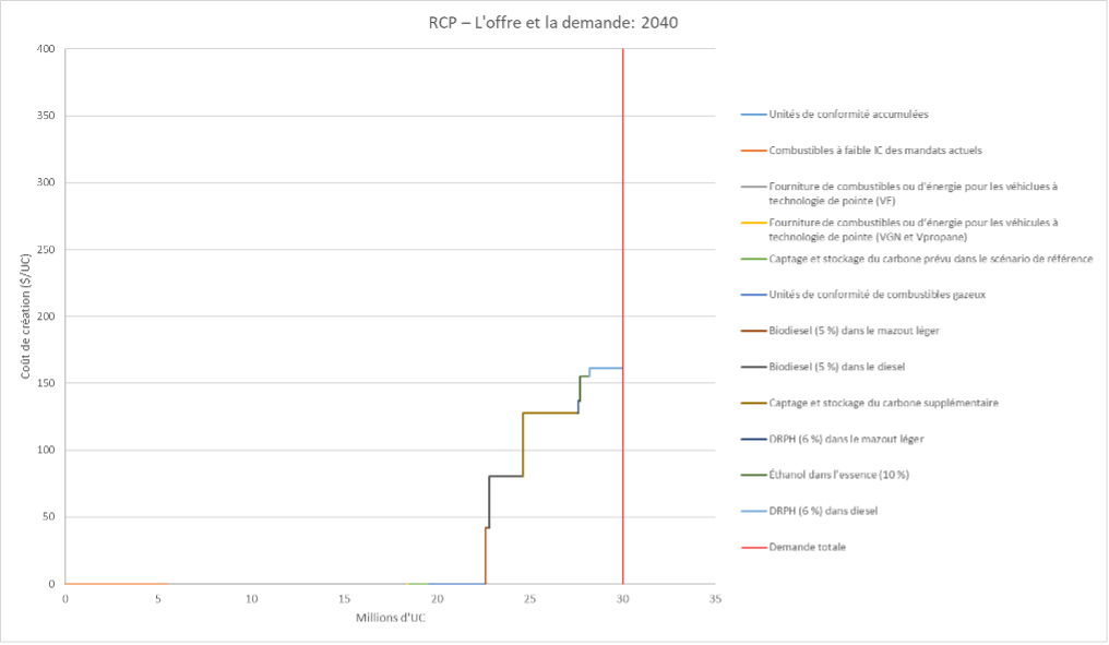 Cette approche d’analyse de l′équilibre entre l′offre et la demande est robuste et utilise les meilleures données actuellement disponibles. Toutefois, l′analyse de l′ECCC ne tient pas en compte l′effet des UC des combustibles gazeux. Rappelons que chaque fournisseur de combustibles peut satisfaire 10 % de son obligation en utilisant ces UC de combustibles gazeux.